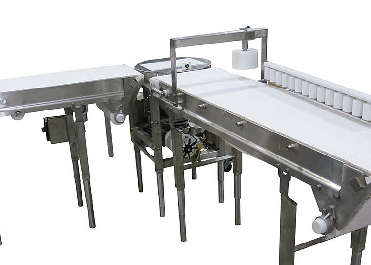 Dorner Conveyors has come up with a custom solution to help customers that are in a limited space and do not have the room to add a traditional curve to their conveyor. Their result is a 90 degree product rotator.