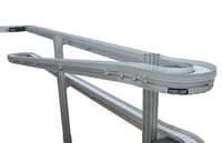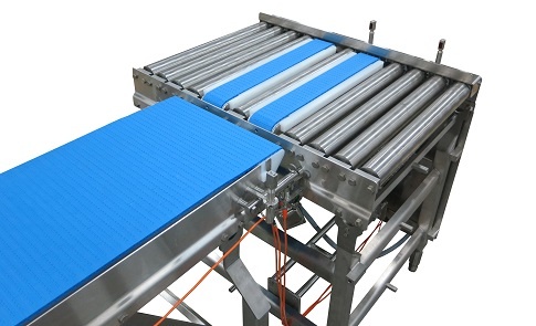Both conveyors are our AquaPruf 7400 Series Sanitary Conveyors, designed for quick and easy cleaning in washdown environments. The two conveyors running between the lines have the optional nose bar idler pulley allowing for tight transfers.