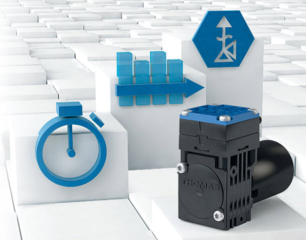 The new THOMAS 1510 is designed for fast suction of liquids, even when the medium is mixed with gas. The diaphragm design ensures very consistent flow with minor pulsation. Therefore, the THOMAS 1510 fits perfectly to applications in laboratory equipment and inkjet printing.